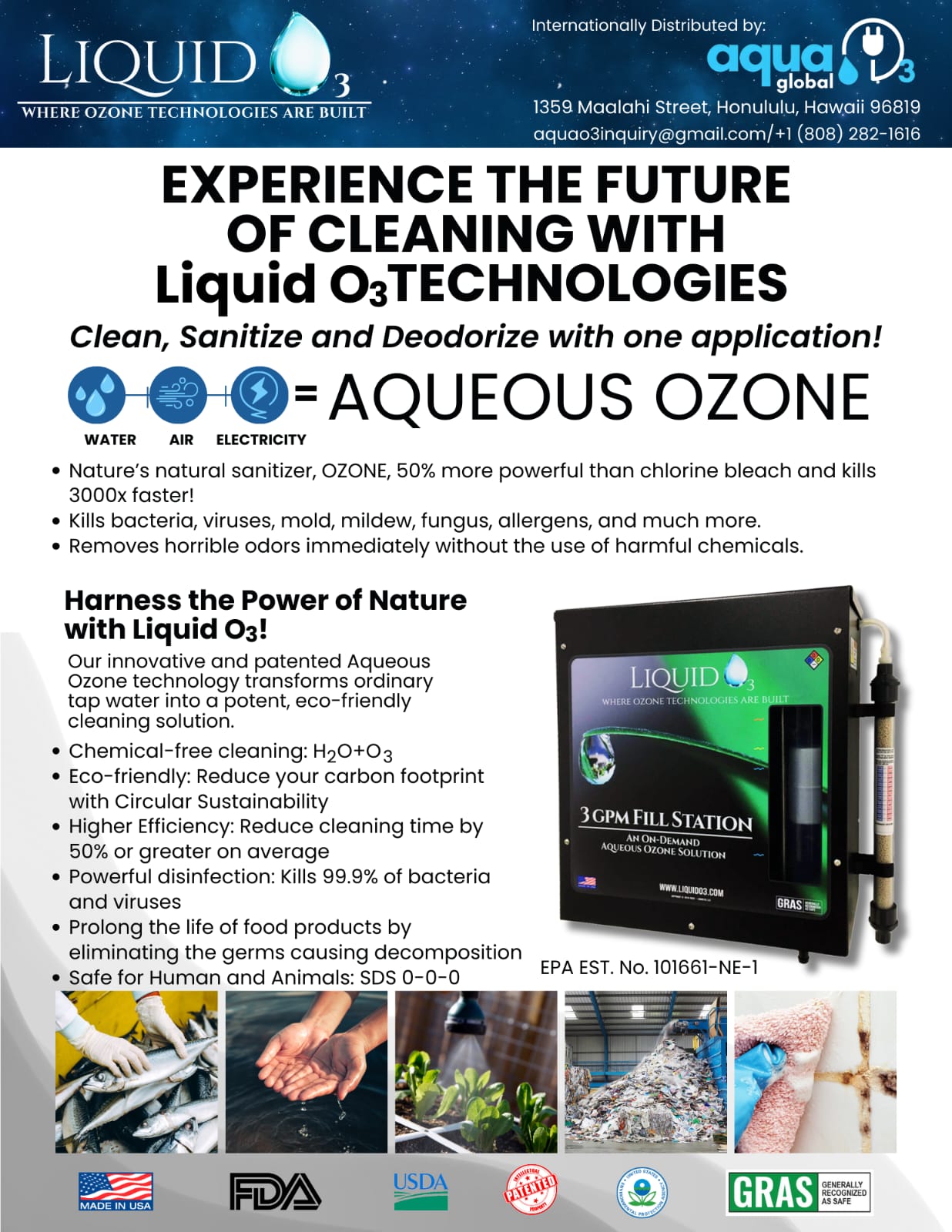 Experience cutting-edge cleaning and sanitizing solutions with Aqueous Ozone. Designed for hospitals, hotels, schools, and more, this game-changing technology is safe, effective, and sustainable.